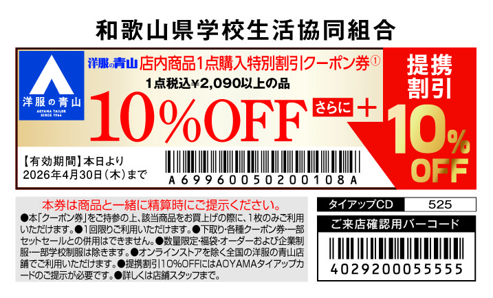 5%OFFクーポンご入り用の方は学校生協まで!